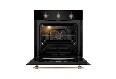 Духовой шкаф Maunfeld EOGC604RBG. MT Slim — это сочетание современных технологий и классического дизайна. Эта модель отличается своим стильным внешним видом, который подчеркивает ее ретро-дизайн. Черный цвет корпуса и бронзовая фурнитура создают элегантный и респектабельный образ, который станет украшением любой кухни. Изюминкой дизайна является механическое управление, выполненное в виде поворотных переключателей. Это не только удобно, но и придает модели особую изюминку, подчеркивая ее ретро-стилистику. Освещение внутри камеры позволяет контролировать процесс приготовления пищи, а трехслойное стекло дверцы обеспечивает сохранность тепла внутри камеры и предотвращает перегрев передней панели. Модель оснащена четырьмя режимами работы, включая гриль и конвекцию, что позволяет готовить разнообразные блюда. Газовый нагрев, работающий в сочетании с вентилятором, обеспечивает равномерное распределение тепла по всему объему камеры. Это позволяет достичь идеального результата при приготовлении любых блю