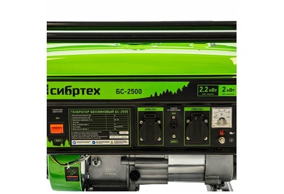 СИБРТЕХ Генератор бензиновый БС-2500, 2,2 кВт, 230В, 4-х такт., 15 л, ручной стартер 94542