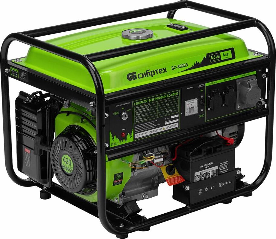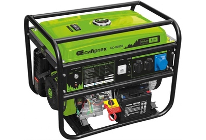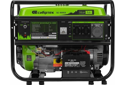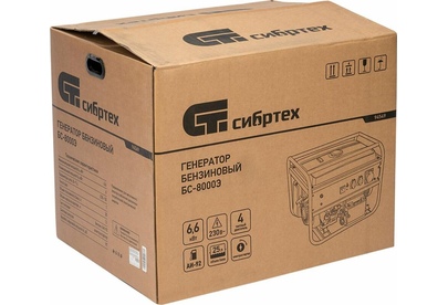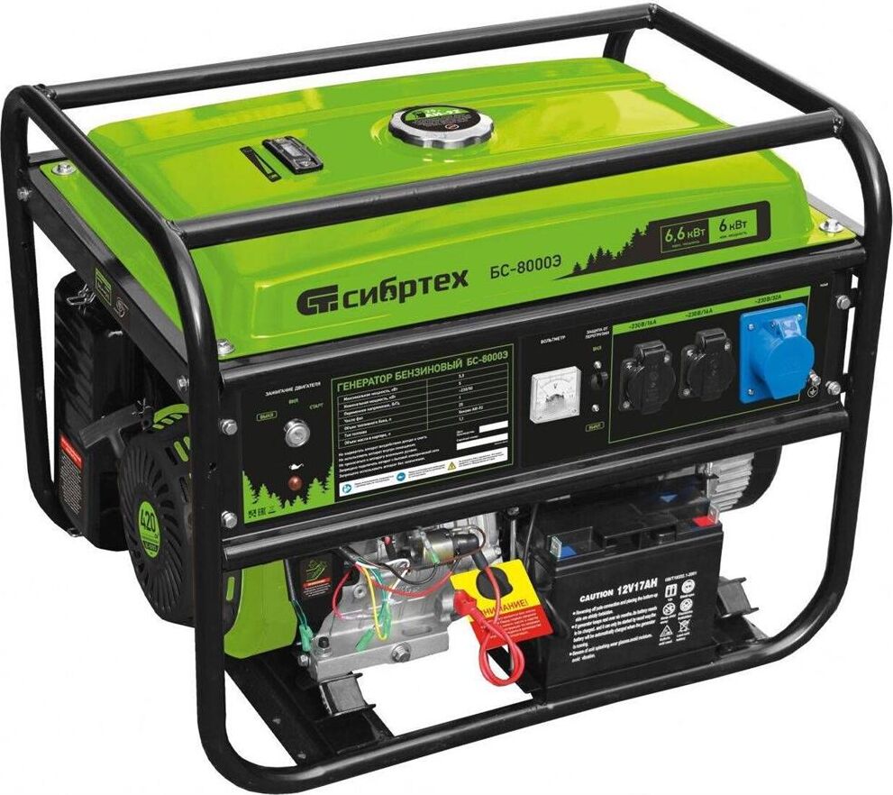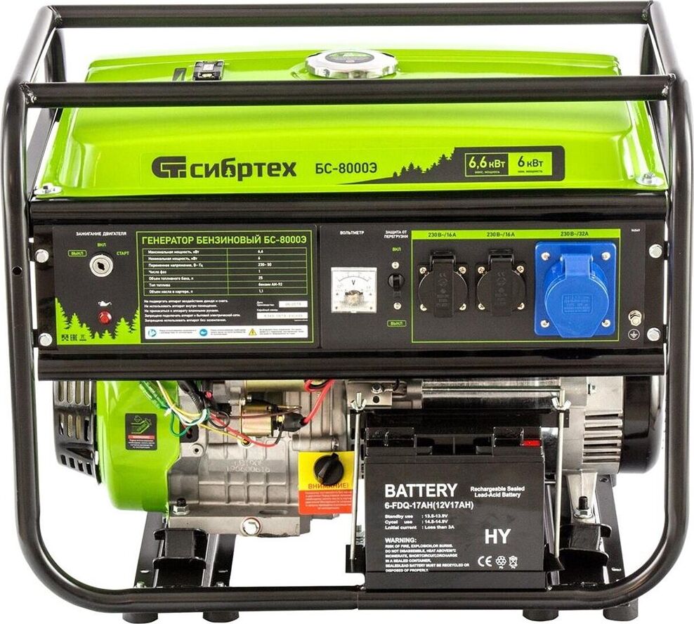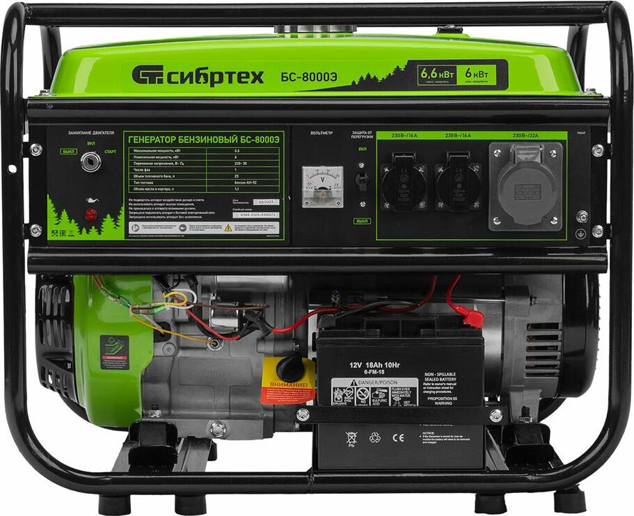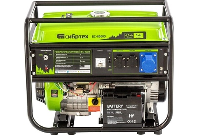 СИБРТЕХ Генератор бензиновый БС-8000Э, 6,6 кВт, 230В, 4-х такт., 25 л, электростартер 94549