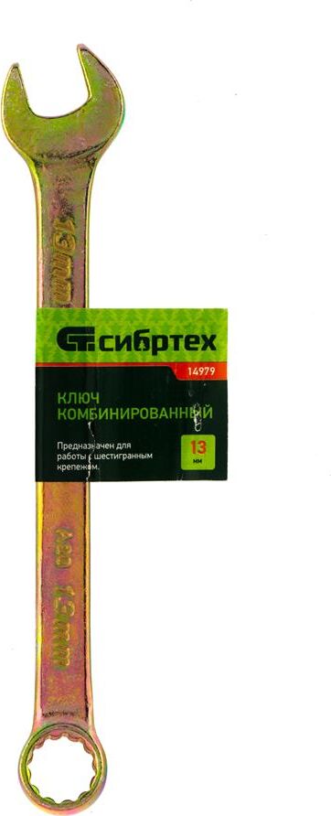 СИБРТЕХ Ключ комбинированный, 13 мм, желтый цинк 14979