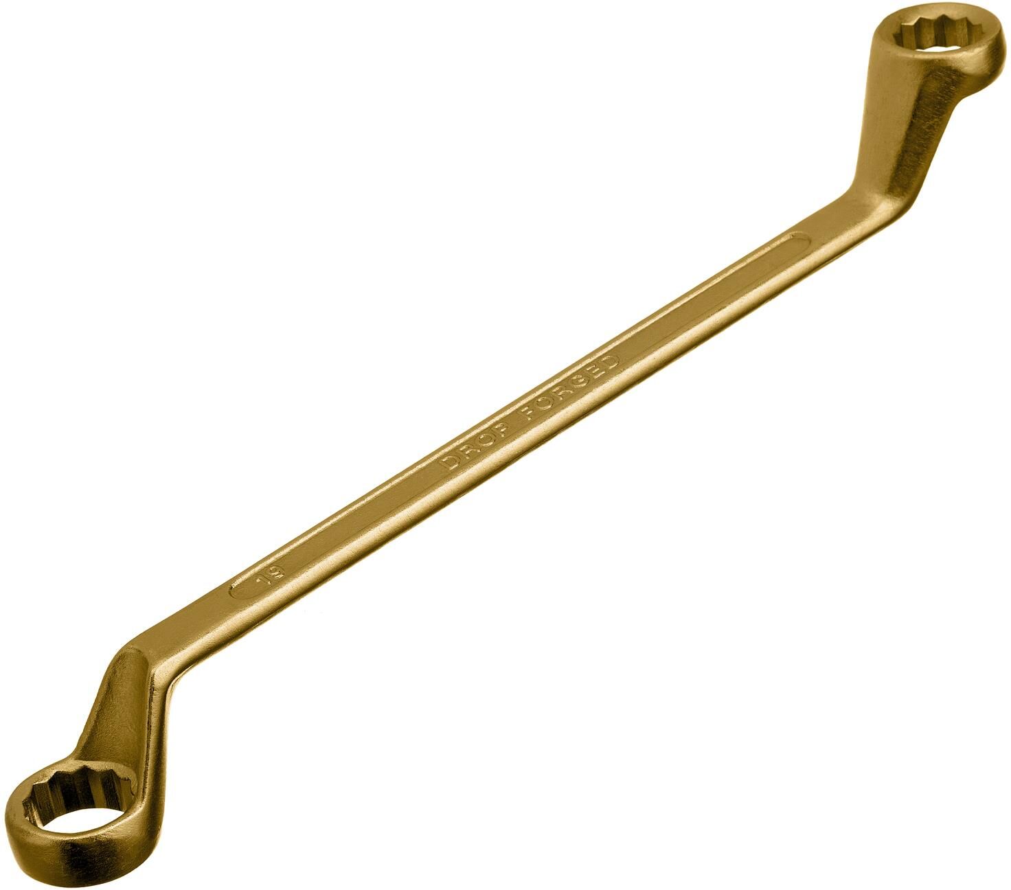 Накидной ключ Сибртех 14626 с покрытием из желтого цинка используется для монтажа и демонтажа резьбового крепежа с шестигранной головкой диаметром 17 и 19 мм. Пригодится для выполнения монтажных работ в гараже, на небольшом производстве и в быту. Кольцевой зев полностью захватывает шляпку крепежного элемента, поэтому ключом легко откручивать даже закисшие болты и гайки. Преимущества Прочность и долговечность — инструмент изготовлен из высококачественной углеродистой стали 45, твердость рабочих частей составляет 42 HRC, что соответствует требованиям ГОСТ (41-46 HRC). Устойчивость к воздействию влаги — желтое цинковое покрытие защищает от образования коррозии. Надежный захват крепежа — 12-гранный профиль каждого кольцевого зева имеет увеличенную площадь соприкосновения с головкой болта или гайки, что минимизирует риск повреждения ее граней. Продуманная конструкция — рабочие части смещены относительно плоскости рукоятки, что делает удобной работу в труднодоступных местах.