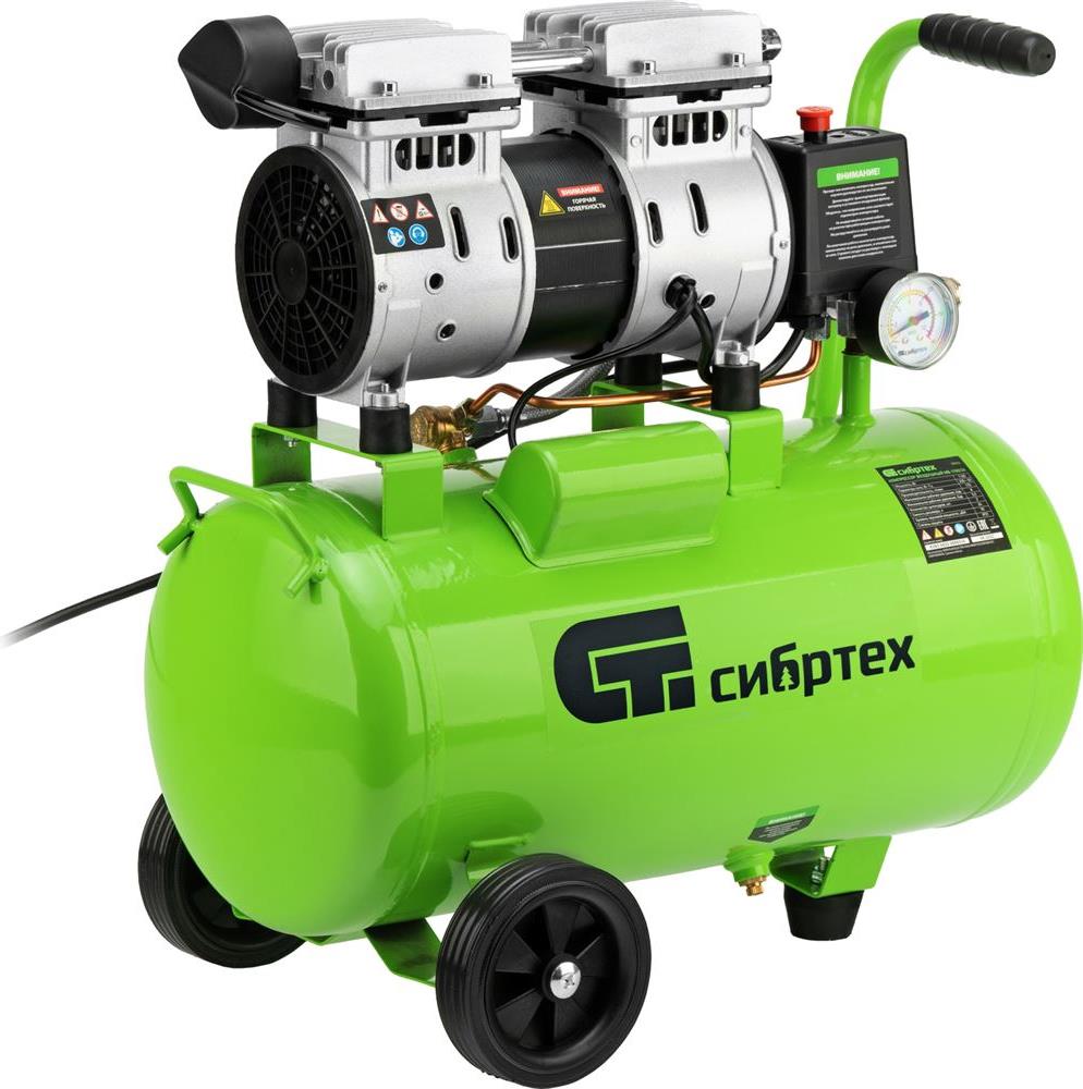 СИБРТЕХ Компрессор безмаслянный малошумный МБ 1100/24,1100 Вт, 24 л, 170 л/мин 58006
