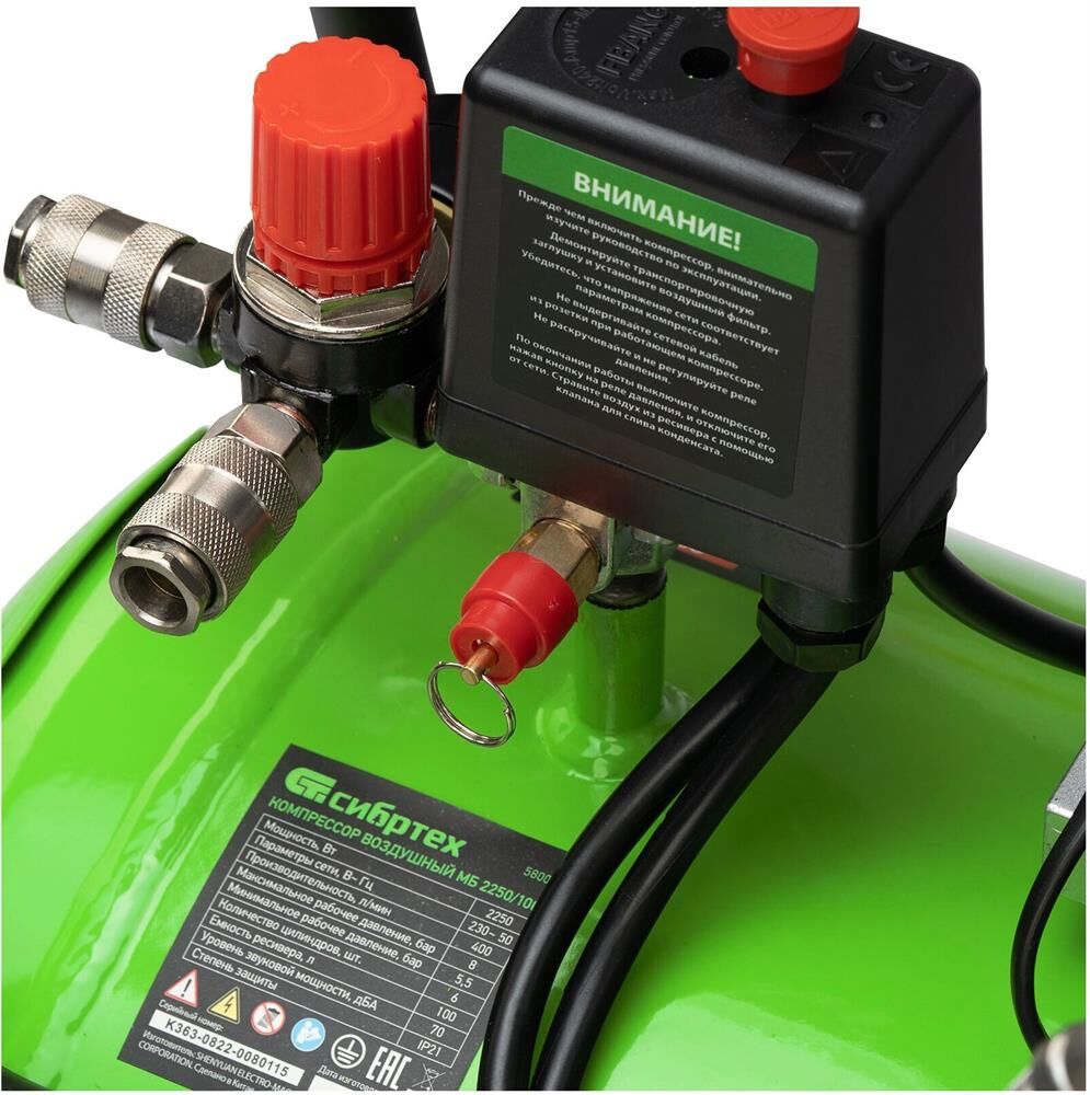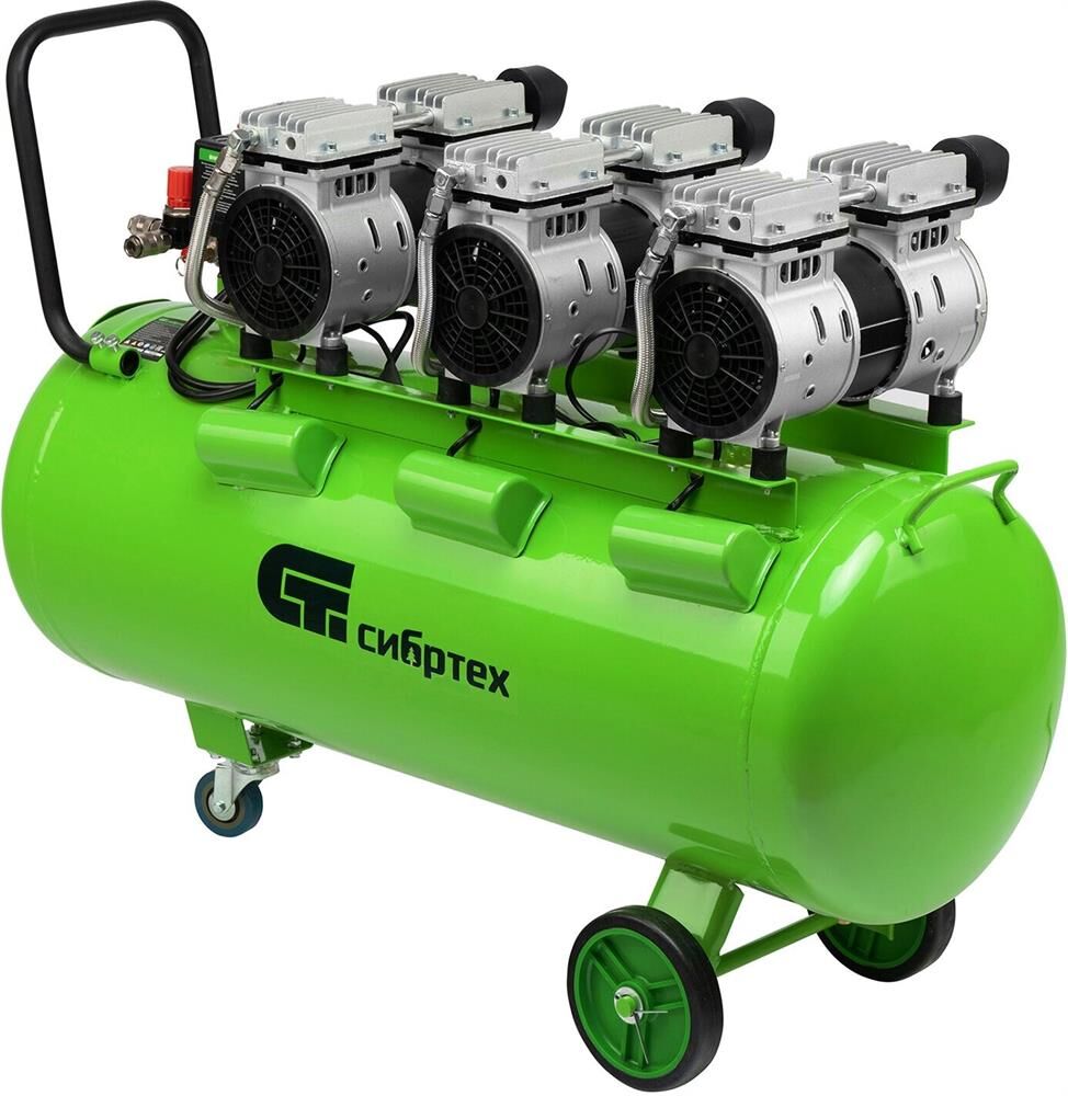 СИБРТЕХ Компрессор безмаслянный малошумный МБ 2250/100, 2250 Вт, 100л, 400 л/мин 58008