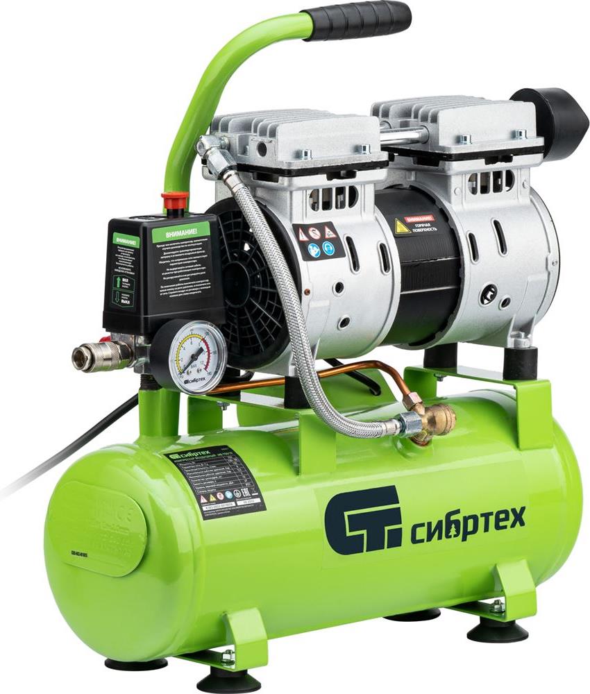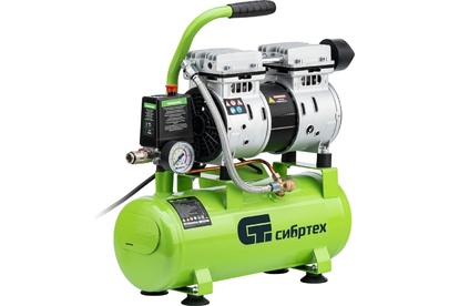 СИБРТЕХ Компрессор безмаслянный малошумный МБ 750/10,750 Вт, 10 л, 150 л/мин 58001