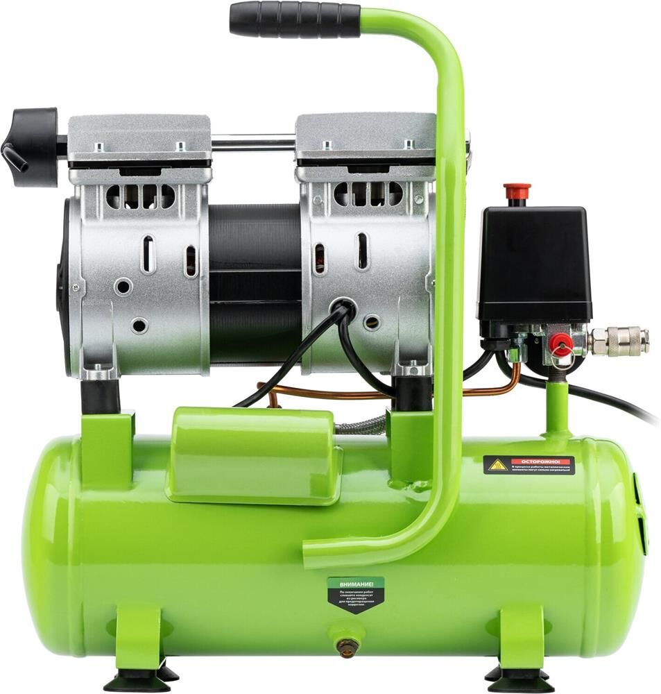 СИБРТЕХ Компрессор безмаслянный малошумный МБ 750/10,750 Вт, 10 л, 150 л/мин 58001
