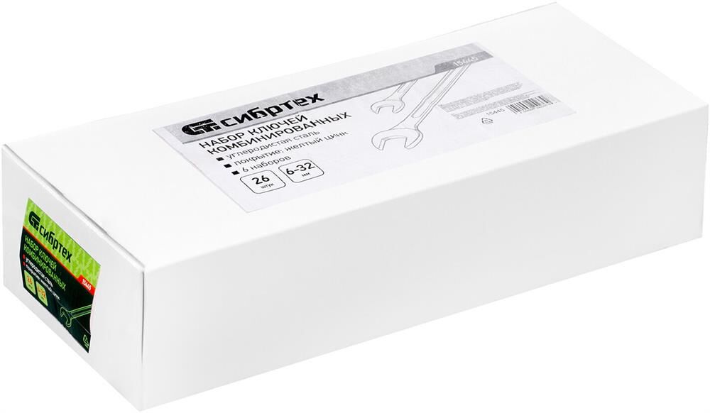 СИБРТЕХ Набор ключей комбинированный 6-32 мм, 26 шт, желтый цинк 15445
