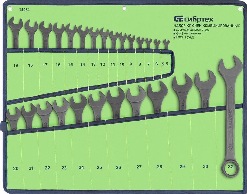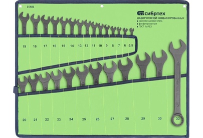 СИБРТЕХ Набор ключей комбинированных, 5,5 - 32 мм, 27 шт., CrV, фосфатированные 15481