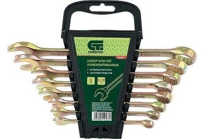 Набор комбинированных ключей 8-19мм, 8шт СИБРТЕХ 15438 состоит из прочных и качественных ручных инструментов, выполненных из углеродистой стали с коррозиестойким покрытием из желтого цинка. Ключи имеют двустороннюю конструкцию, где внутренний профиль кольцевой головки имеет 12 граней и ее угол наклона составляет 15 градусов. Комплект прост и удобен в применении, подходит для выполнения крепежных работ даже в труднодоступных местах. В процессе монтажа риск повреждения граней крепежа - минимален.