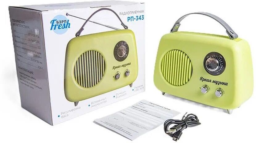 СИГНАЛ Радиоприемник портативный БЗРП Fresh РП-343 зеленый USB SD/microSD