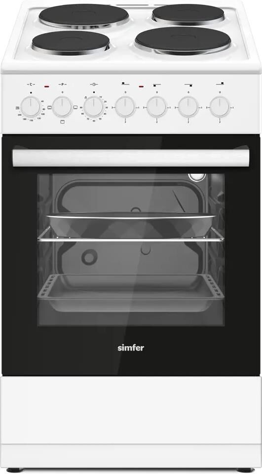 Независимая электрическая соло плита 50х50 • Цвет: белая эмаль Варочная поверхность: • 2 чугунные конфорки O145 мм • 2 чугунные конфорки O180 мм • Управление: поворотные переключатели Духовой шкаф: • Электрическая духовка • 3 режима работы (верхний и нижн
