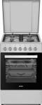 Рабочая поверхность: Рабочий стол: эмаль Количество конфорок: 4 газовые Автоматический розжиг Газ-контроль Чугунные решётки Духовой шкаф: Тип: электрический Полезный объем: 47 л Количество режимов работы: 5 Электрический термостат Механический таймер 90 минут Эмаль легкой очистки “Easy Clean” Двойное остекление дверцы “Cool touch” + Low-e Подсветка внутренней камеры духовки Хромированные направляющие Дополнительная информация: Габариты: 85x50x60 см Управление: поворотные переключатели Металлическая крышка Выдвижной ящик для посуды Комплектация: 1 стандартный противень 1 хромированная решётка 1 круглый Diamond противень жиклёры для баллонного газа
