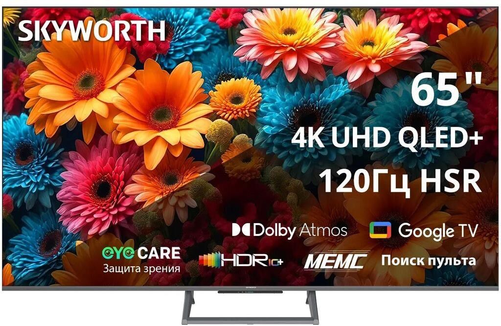 SKYWORTH 65" Телевизор 65Q67H QLED+, 4K Ultra HD, черный, СМАРТ ТВ, Google TV