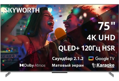 SKYWORTH Телевизор QLED 75" 75Q75G Magic Sound Karaoke TV Frameless черный/черный 4K Ultra HD 120Hz