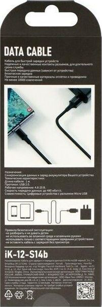 SMARTBUY (iK-12-S14b) S14 MicroUSB черный, 3 А, 1 м