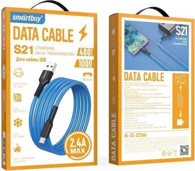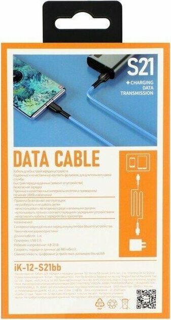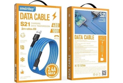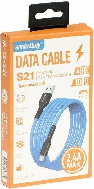 SMARTBUY (iK-12-S21bb) S21 MicroUSB синий, 2.4 А, сил., 1 м