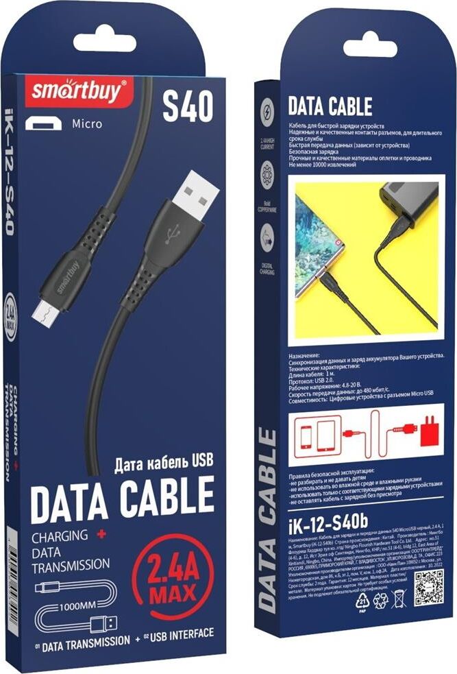 SMARTBUY (iK-12-S40b) S40 MicroUSB черный, 2.4 А, 1 м,