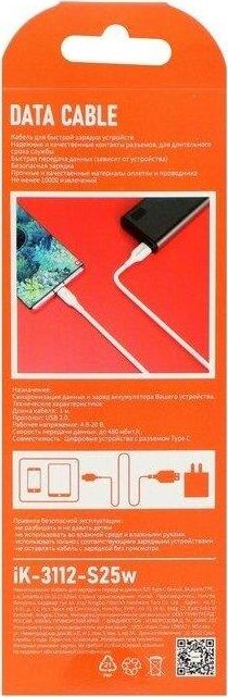 SMARTBUY (iK-3112-S25w) S25 Type C белый, 3А,soarer,TPE, 1 м