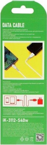 SMARTBUY (iK-3112-S40w) S40 Type C белый, 3 А, 1 м