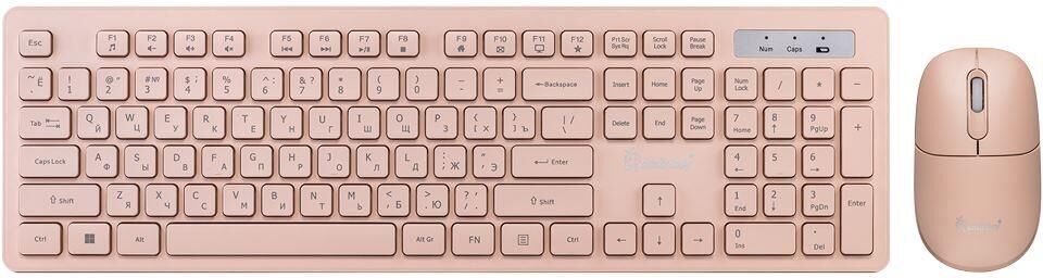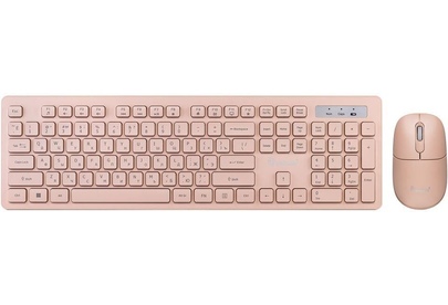 Беспроводная клавиатура и мышь имеют выверенные эргономичные формы. У клавиатуры низкопрофильные клавиши, нажимаются тихо и мягко. У мыши бесшумные кнопки и оптимальный размер, на нижней панели есть кнопка включения/отключения питания. Мышь и клавиатура работают от одного нано-ресивера. Радиус сигнала до 10 метров. Клавиатура имеет мультимедийные клавиши, которые активируются при нажатой клавише FN. Батарейки входят в комплект. Питание: 1 х ААА, 1 x АА