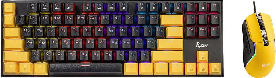 Игровой комплект Smartbuy Rush F16 состоит из механической клавиатуры с красными переключателями и оптической эргономичной мыши. Компактная клавиатура (89 клавиш) с прочным съемным кабелем поддерживает функцию Антигостинг - одновременное нажатие до 26 клавиш. Доступны 17 игровых режимов RGB-подсветки и мультимедийный функционал. Ресурс – 20 млн нажатий. Мышь имеет изменяемое разрешение сенсора в диапазоне 800-7200 DPI, 13 режимов RGB-подсветки, кабель в прочной оплетке и ресурс 3 млн нажатий.