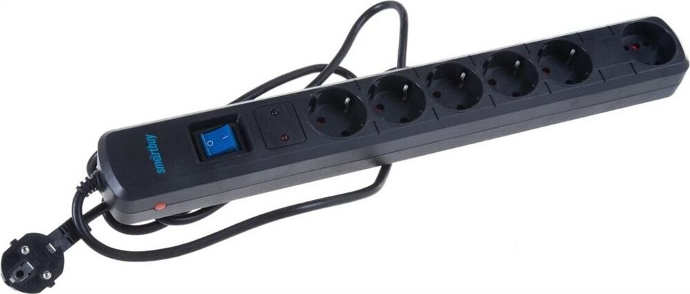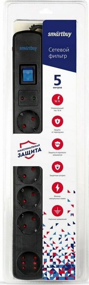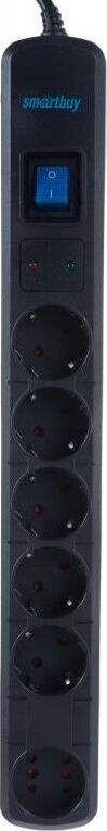 Сетевой фильтр Smartbuy- 16А- 3500 Вт- 6 гнезд- длина 5-0 м- черный (SBSP-50K-Pro)/30