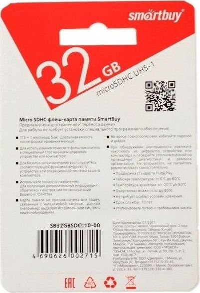 Карта памяти microSDHC SmartBuy 32Gb Class 10