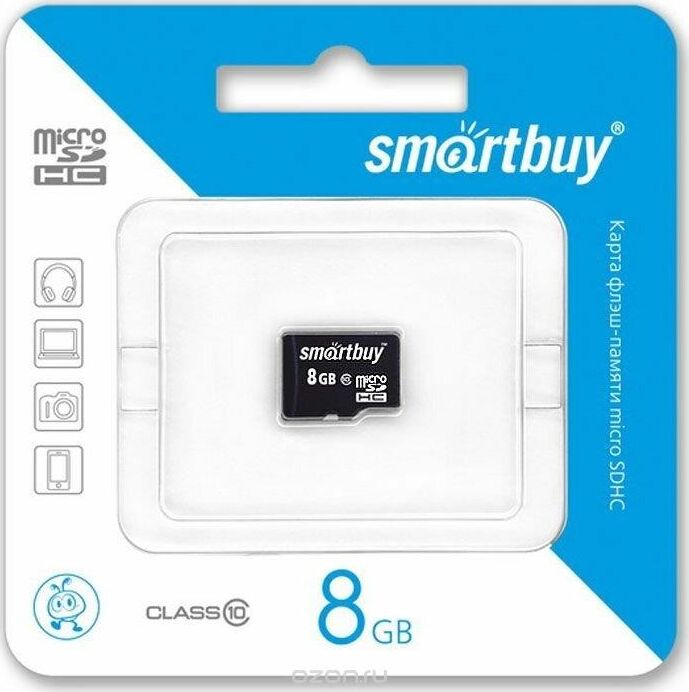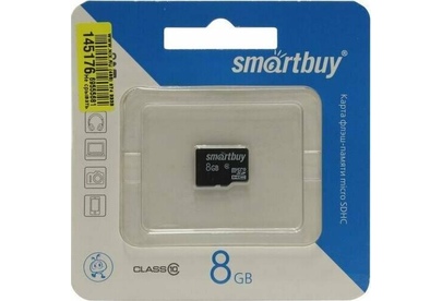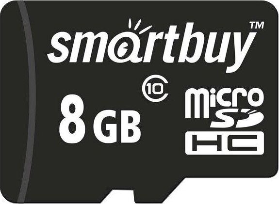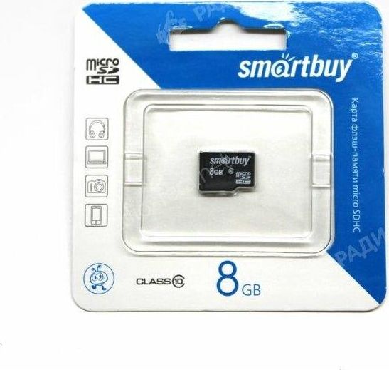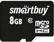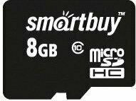 micro SDHC карта памяти Smart Buy 8GB Сlass 10. Скорость передачи данных 10 МБ/с.