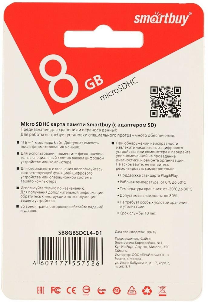 SMARTBUY MicroSDHC 8GB Сlass4 + адаптер (5)