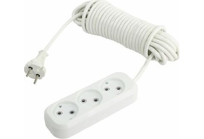 Удлинитель, количество розеток - 3, номинальный ток, А - 10, номинальное напряжение: 250 В; частота: 50 Гц; тип провода: ПВС 2x1,0мм; материал корпуса: АБС-пластик; климатическое исполнение: УХЛ-3; степень защиты от влаги и пыли: IP-20; длина провода - 10 м.