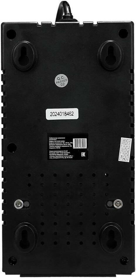 Вес товара: 1.9. Выходная мощность (VA): 500. Особенности: Бытовой стабилизатор напряжения SMARTWATT AVR HOME 500RU предназначен для защиты бытовой и компьютерной техники. Оснащен двумя розетками со стабилизацией выходного напряжения и двумя розетками с защитой от импульсных перенапряжений (сетевой фильтр).. Габариты упаковки (ед) ДхШхВ: 0.297x0.16x0.133. Вес упаковки (ед): 1.89. Гарантия: 12 мес.. Размеры: 230x130x110 мм. Входное напряжение: 150 - 275 В. Выходное напряжение: 220 В. Входное напряжение: 150 - 275 В. Выходное напряжение: 220 В. Выходная мощность: 500 ВA