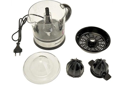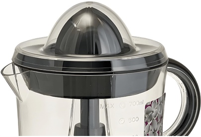 Номинальная потребляемая мощность 40 Вт Емкость чаши 700 мл Описание Соковыжималка электрическая предназначена для извлечения сока из лимона, лайма, апельсина и грейпфрута в бытовых и аналогичных условиях Корпус из пластика Цвет: черный Прозрачная чаша с мерной шкалой Прозрачная крышка Две конусовидные насадки разных размеров Противоскользящие резиновые ножки Односкоростной режим работы Вращение в обе стороны Возможность мытья чаши в посудомоечной машине