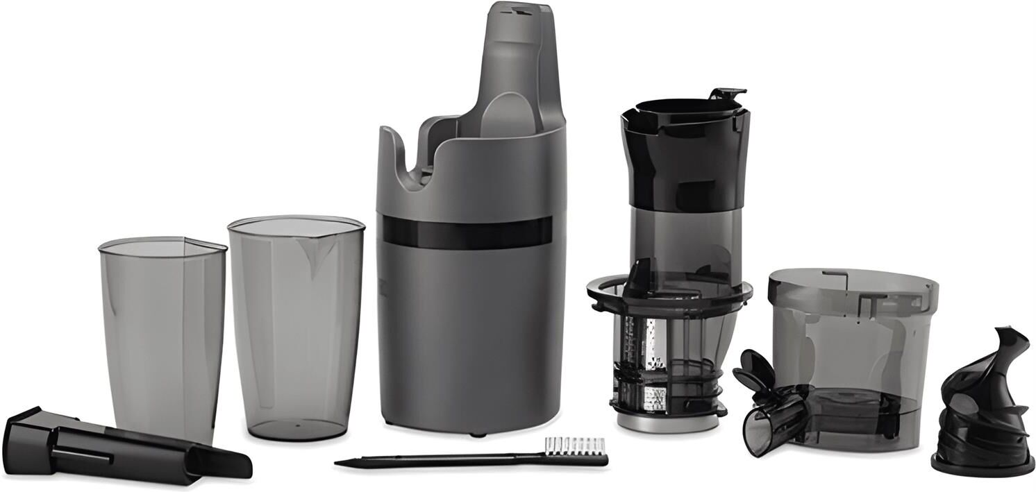 Соковыжималка шнековая, Мощность 200 Вт, Холодный отжим, Сохраняет до 85% сока, Можно отжимать любые овощи, фрукты, ягоды, зелень и корнеплоды, Сверхширокое загрузочное отверстие 75 мм, Система капля-стоп, Функция реверса, До 65 об/мин, Благодаря низким оборотам сок не нагревается и сохраняет все свои полезные свойства и витамины, Отсутствие термической обработки и окисления в процессе отжима позволяет сохранить до 100% витаминов и минералов в соке, Кувшин для сока 0.8 л, Резервуар для жмыха 0.6 л, Cетка из нержавеющей стали, Автоматический выброс мякоти, Система прямой подачи сока, Защита от перегрузки и перегрева, Защита от случайного включения, Низкий уровень шума, Нескользящие ножки, Длина шнура электропитания 0.9 м, Напряжение сети 220-240 В, 50 Гц
