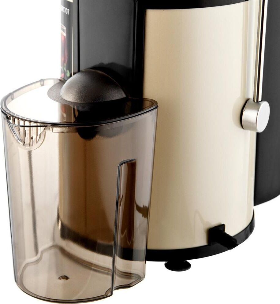 Центробежная соковыжималка Мощность 500 Вт 2 скорости Корпус из высококачественного пластика Контейнер для сока объемом 0,5 л Контейнер для мякоти объемом 1,6 л Диаметр отверстия 65 мм Противокапельная система Прорезиненные ножки Электропитание 220-240 В, ~50/60 Гц
