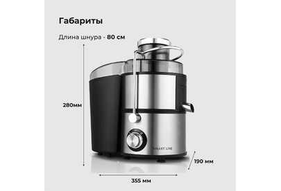 Соковыжималка Galaxy LINE GL 0809, серебристый, центробежная, 1200 Вт, 19 000 об/мин, 2 скорости, емкость для сока 0,5 л