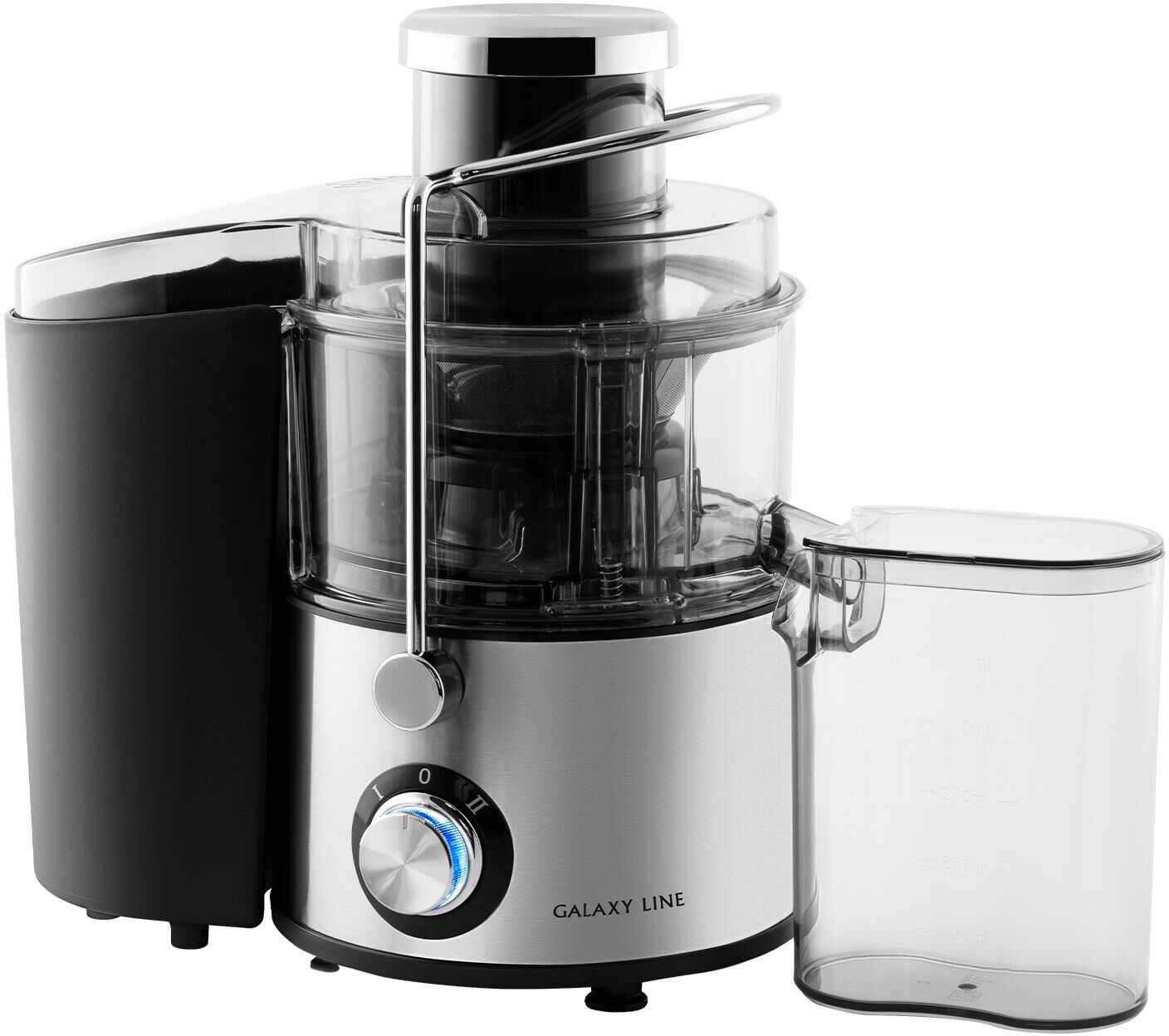 Соковыжималка Galaxy LINE GL 0810, серебристый, центробежная, 1200 Вт, 19 000 об/мин, 2 скорости, емкость для сока 0,5 л