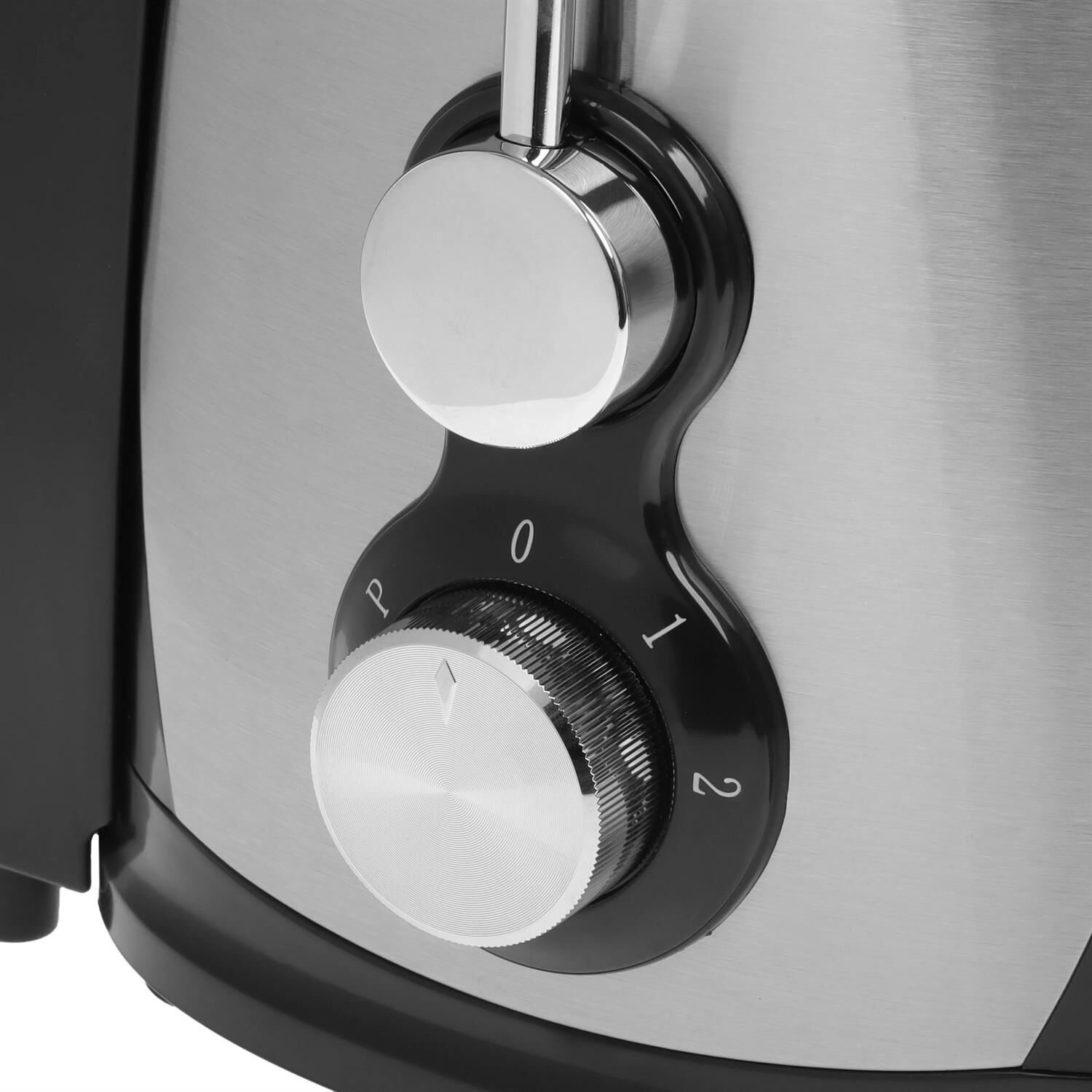 Соковыжималка центробежная. Мощность 1100 Вт, питание 220-240В, 50Гц, металлический корпус и фильтр, объем резервуара сока 1л., 2 скорости + импульный режим, широка я загрузочная горловина - 75мм, объем контейнера для жмыха 1л, функция "Капля-стоп, прорезиненные ножки, защита от перегрева и перегрузки, блокировка двигателя при открытой крышке, легкая очистка