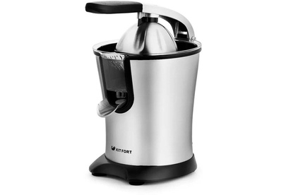 Соковыжималка для цитрусовых Kitfort KT-1108 с прижимным механизмом предназначена для отжима сока из цитрусовых плодов среднего и крупного размера. Корпус устройства, фильтр и носик выполнены из нержавеющей стали, остальные детали изготовлены из качественного пищевого пластика. Чтобы привести соковыжималку в действие нужно нажать на ручку. Ручка покрыта специальным, мягким на ощупь пластиком. Подача сока осуществляется сразу в ваш бокал. Соковыжималку удобно мыть, все съёмные части легко вынимаются.