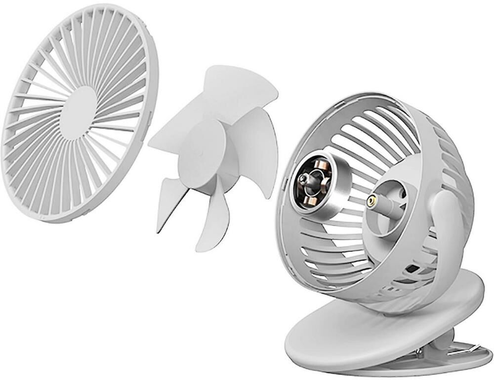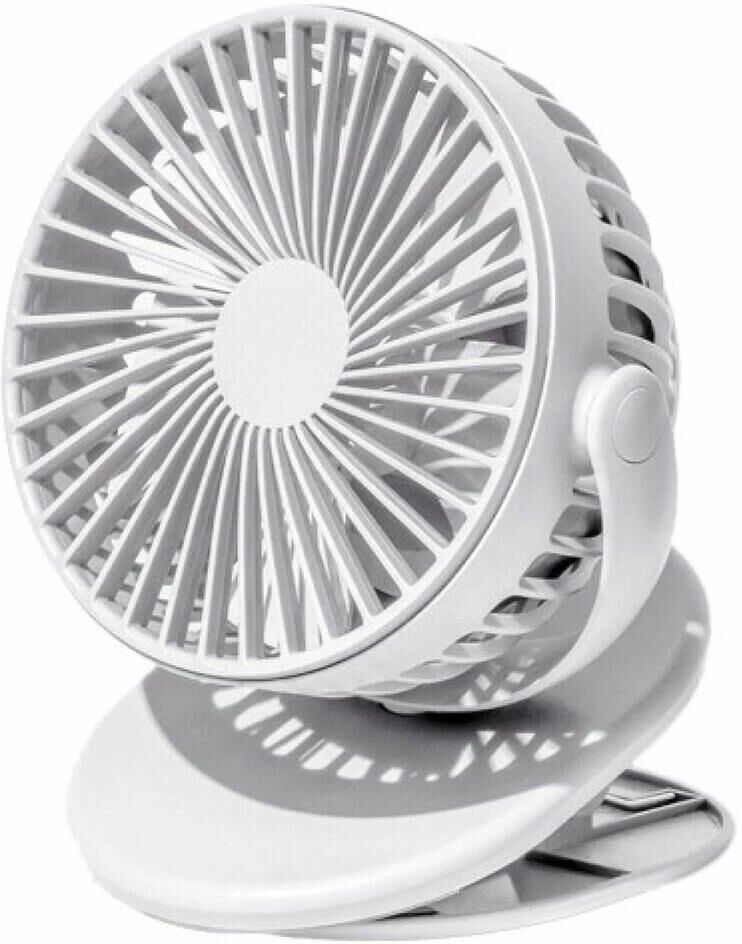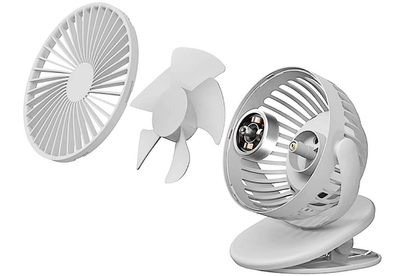 Вращение корпуса 360. Три скорости, зарядка от USB. Основание вентилятора представляет собой крепкий зажим с противоскользящим покрытием. Встроенный аккумулятор емкостью 2000 мА поддерживает работу вентилятора в течение 2-6 часов. Встроенный порт USB Type-C. Погружать корпус в воду запрещено.