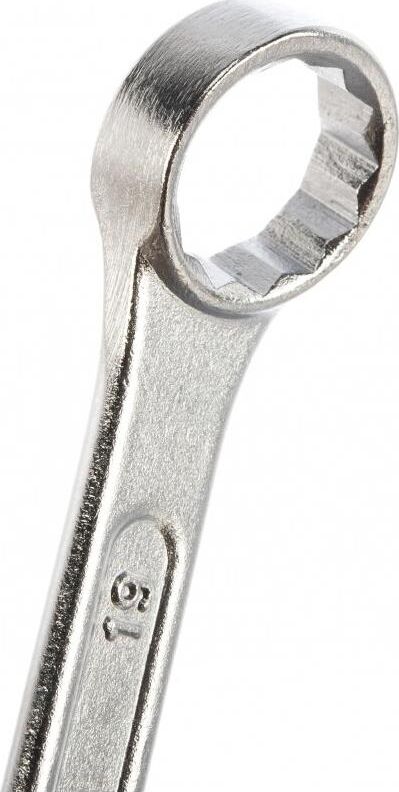 Комбинированный ключ Sparta 150465, 19 мм, хромированный — слесарно-монтажный инструмент для работы с резьбовыми соединениями. 12-гранная накидная головка обеспечивает надежный контакт с поверхностью крепежа, а рожковый зев дает возможность работать там, где применение кольцевого затруднено. Ключ пригодится в мастерской, гараже, будет полезен во время строительства и ремонта.ПреимуществаКлюч изготовлен из углеродистой стали марки 45, чем обеспечивается его прочность и хороший ресурс.Твердость рабочих частей ключа составляет 42 HRC, это соответствует требованиям ГОСТ.Хромированная поверхность не подвержена коррозии, что продлевает срок службы инструмента.Кольцевая головка смещена на 15 градусов относительно плоскости ключа, это облегчает монтаж в труднодоступных местах.