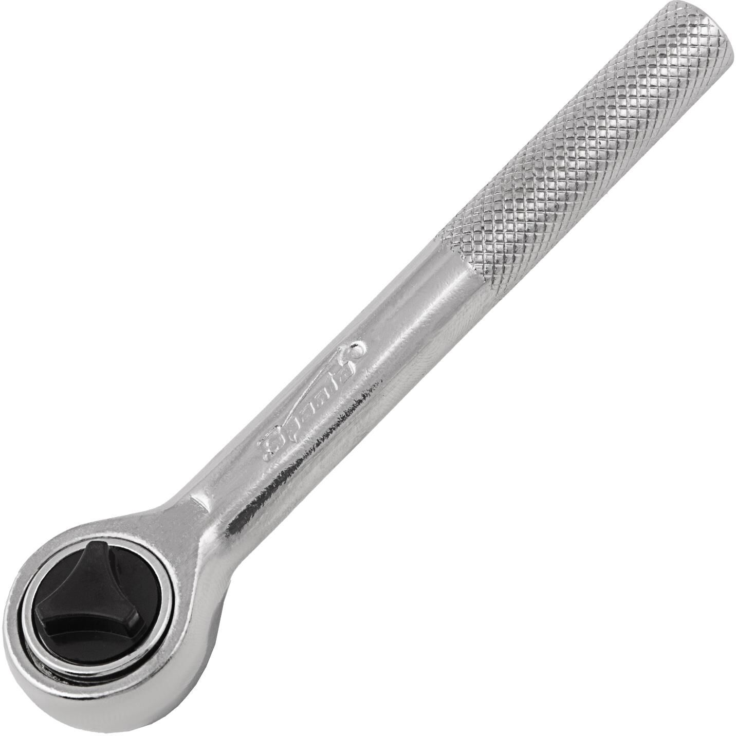 Ключ-трещотка Sparta 140205 из стали CrV, с присоединительным квадратом 1/4" и переключателем, применяется для монтажа и демонтажа болтов и гаек при помощи торцевых головок. Храповой механизм облегчает работу в ограниченном пространстве. Инструмент пригодится в ремонтной мастерской, автосервисе, а также дома или на даче. Преимущества Высокий показатель прочности и износостойкости — ключ изготовлен из хромованадиевой стали. Надежная защита от коррозии — поверхность ключа хромирована. Переключатель реверса — можно быстро изменить направление вращения. Функция быстрого сброса — для замены насадки требуется всего несколько секунд. Надежная фиксация насадки — благодаря шариковому фиксатору она не отскакивает во время работы. Комфортная работа — рукоятка с рельефной поверхностью не выскальзывает из ладони.