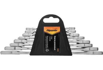 Набор из 8 хромированных рожковых ключей Sparta 152755 предназначен для откручивания и закручивания болтов, гаек и других крепежей с шестигранным профилем размером от 6 до 22 мм. У каждого ключа имеются рабочие губки с различным размером зева. Они расположены под углом к рукоятке, что облегчает работу в стесненных условиях. Инструменты используются для сборки и разборки оборудования, при проведении монтажных работ, будут полезны дома, на даче или в гараже. Преимущества Прочность и деформационная стойкость — ключи изготовлены из углеродистой стали 45. Устойчивость к износу — твердость рабочих частей составляет 42 HRC, что полностью соответствует требованиям ГОСТ. Долговечность — хромированная поверхность ключей не подвержена коррозии.