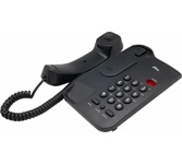 Проводной базовый телефон без дисплея. Сброс/ Повтор номера/Отключение микрофона. Переключение Импульсного /Тонового набора номера. Блокировка набора номера. Регулировка громкости звонка. Светодиодная индикация подключения к линии. Настольное и настенное крепление.