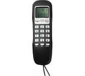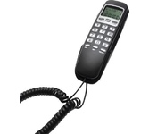 Проводной телефон с дисплеем, узкий корпус. Кнопки набора номера на базе. Пауза/ Повтор набора номера. Переключение. Системы определения номера входящего звонка (Caller ID), 32 входящих, 16 исходящих номеров в памяти. Импульсного /Тонового набора номера. Настольное и настенное крепление.