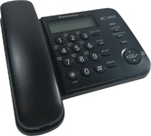 Проводной телефон, черный, индикатор вызова, однокнопочный набор 20 номеров, ускоренный набор 10 номеров, повторный набор последнего номера, переключ.тон/имп.набора, регулировка угла рабочей панели (2 уровня), 4 уровня громкости звонка выкл/тихо/средне/гр