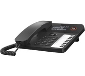проводной телефон, дисплей, АОН, однокнопочный набор 20 номеров, спикерфон, повторный набор номера, тональный набор, кнопка выключения микрофона, регулятор громкости звонка