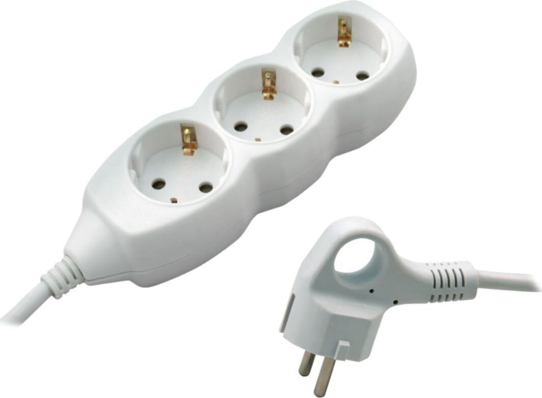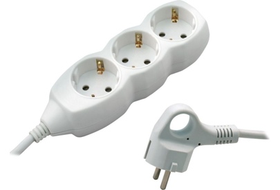 Колодка на 3 розетки Длина провода 5 м. Провод ПВС с сечением 3х0,75 мм2. Заземление Макс нагрузка 2200 Вт Сила тока 10 А Эргономичная вилка Материал - негорючий, ударопрочный РР-пластик. Корпус неразборный. Цвет-белый