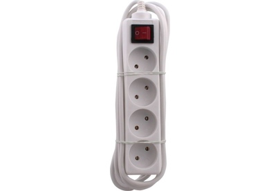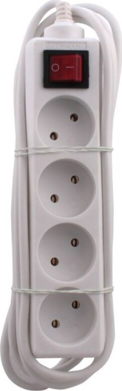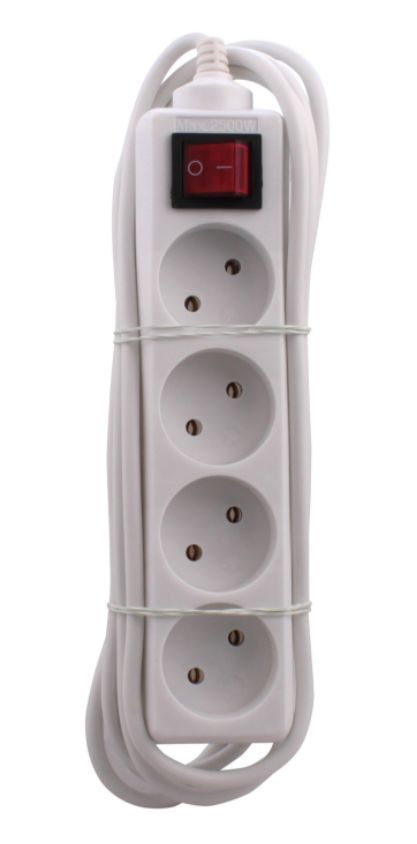 Колодка на 4 розетки Длина провода 3 м. Провод ПВС с сечением 2х0,75 мм2. Кнопка включения Макс нагрузка 2200 Вт Сила тока 10 А Материал - негорючий, ударопрочный РР-пластик. Корпус неразборный. Цвет-белый