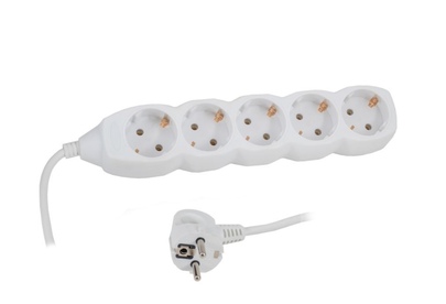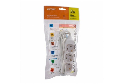Колодка на 5 розеток Длина провода 3 м. Провод ПВС с сечением 3х0,75 мм2. Заземление Макс нагрузка 2200 Вт Сила тока 10 А Эргономичная вилка Материал - негорючий, ударопрочный РР-пластик. Корпус неразборный. Цвет-белый