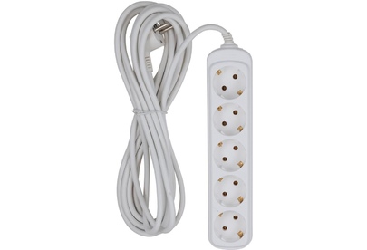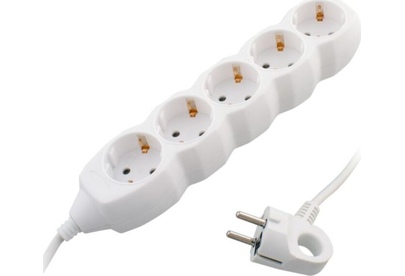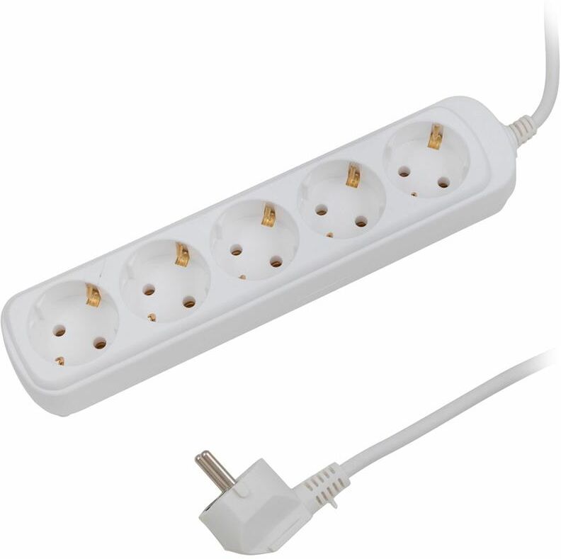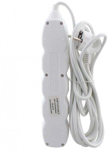 Колодка на 5 розеток Длина провода 5 м. Провод ПВС с сечением 3х0,75 мм2. Заземление Макс нагрузка 2200 Вт Сила тока 10 А Эргономичная вилка Материал - негорючий, ударопрочный РР-пластик. Корпус неразборный. Цвет-белый
