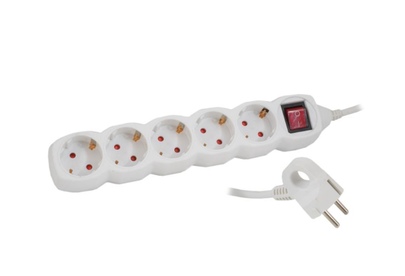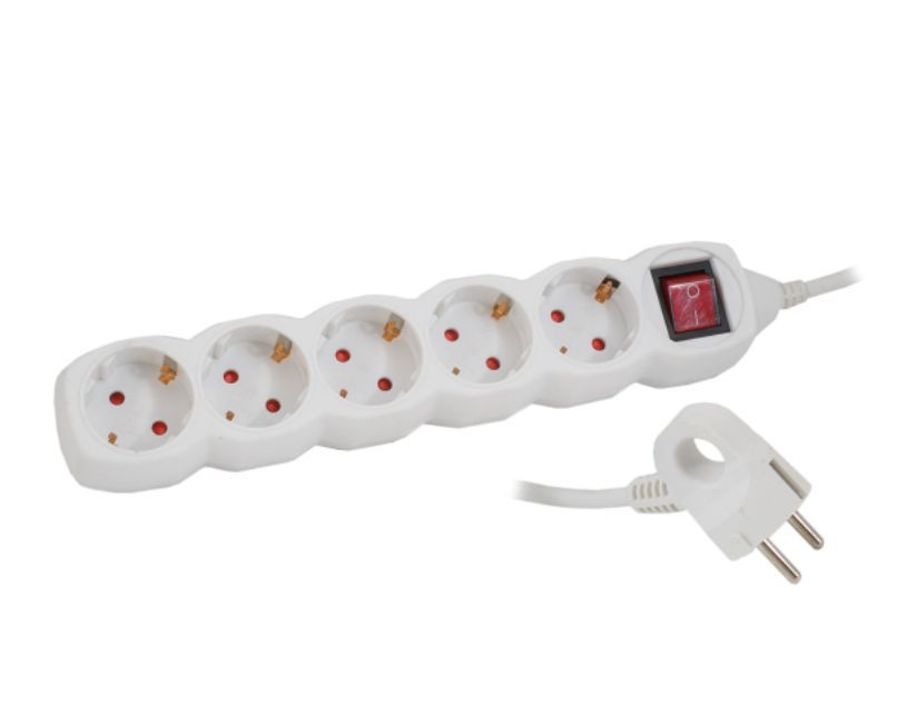Колодка на 5 розеток Длина провода 3 м. Провод ПВС с сечением 3х0,75 мм2. Заземление Защитные шторки от детей Кнопка включения Макс нагрузка 2200 Вт Сила тока 10 А Эргономичная вилка Материал - негорючий, ударопрочный РР-пластик. Корпус неразборный. Цвет-белый